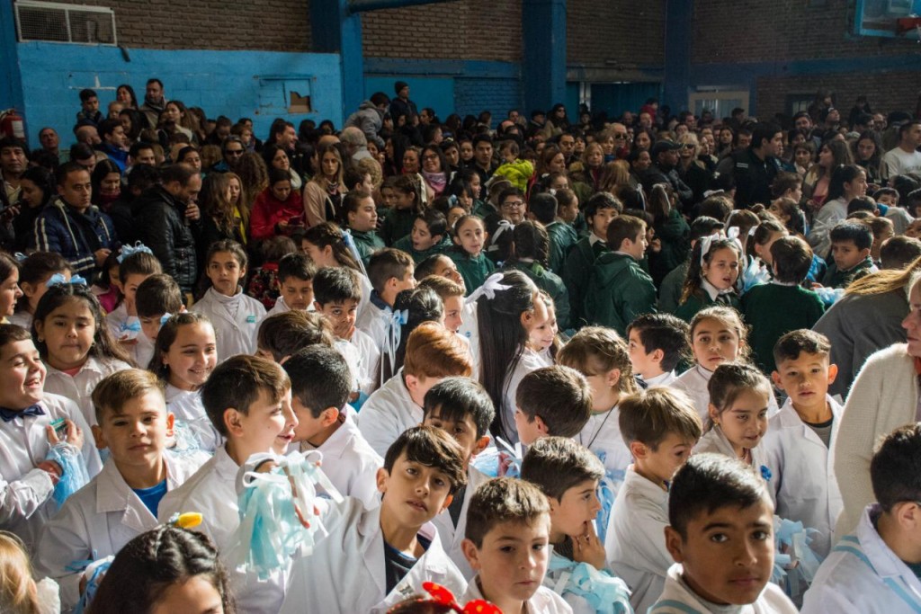 Momento en el que Intendente Alberto Martino toma la Promesa a la Bandera a más de 800 alumnos de distintas Escuelas Publicas y Privadas de nuestra Ciudad