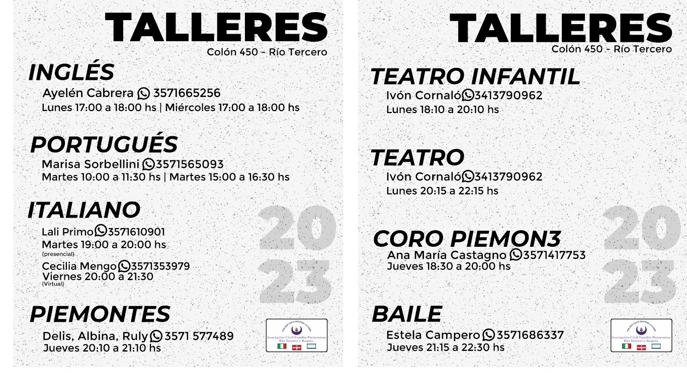 Hablamos al respecto con Cesilia Morielli, presidenta de la Asociación Civil Familia Piemontesa de Río Tercero y Región, quien nos comentó acerca de las distintas ofertas para este ciclo 2023.