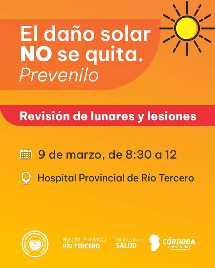 Hablamos al respecto con la directora del Hospital, la médica Andrea Zalazar, quien señaló que la actividad estará a cargo de la Dermatóloga del nosocomio, Antonella Caggia. "En primera instancia habrá una charla de capacitación y prevención y luego se realizará el control en lunares y lesiones", expresó Zalazar para agregar que la actividad comenzará a las 8 y que los interesados deben estar a esa hora en el hospital.