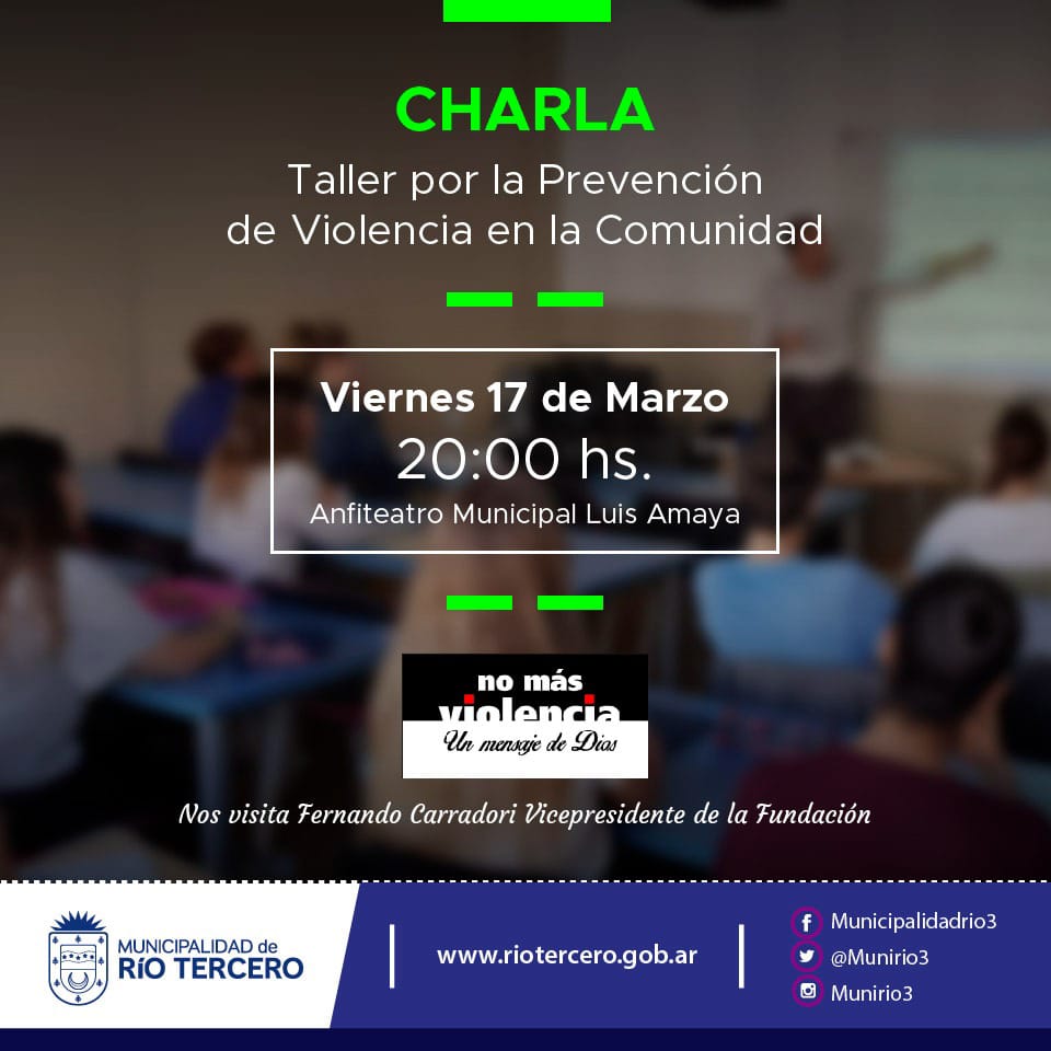 El funcionario municipal explicó que la Fundación tiene más de 20 años de experiencia y está presente en 20 países, e invitó a la ciudadanía a participar en esta charla que tendrá "conceptos precisos y concisos, con debate y posibilidad de exponer opiniones" en la búsqueda de herramientas para resolver situaciones de violencia. Participarán diferentes áreas municipales, efectivos policiales, bomberos y público en general.