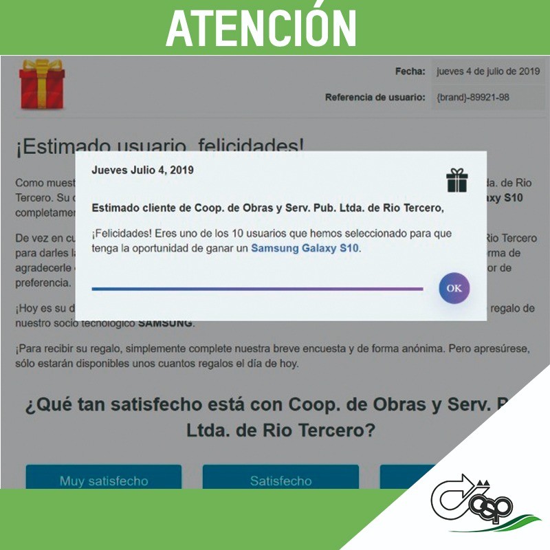 👉El email que usted ha recibido, hace mención a Coop. de Obras de Río Tercero ya que identifican que usted es