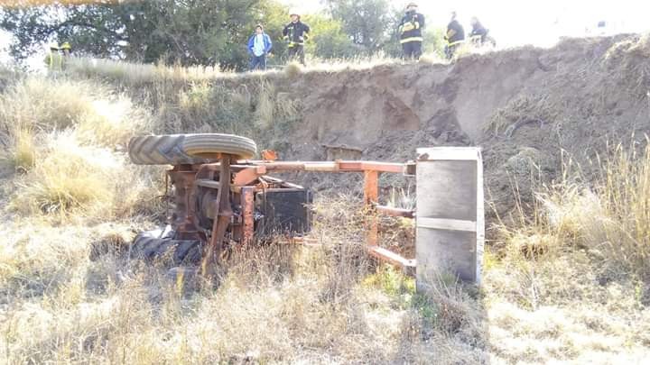 INFORME: 14.10 hs constituido personal de Patrulla Rural en predio rural de la empresa Globoave, ubicada a la vera de la autovía Almafuerte-Rio Tercero, km 7, donde se constató el fallecimiento de un hombre de 46 años, por aplastamiento de un tractor. Según información recabada, momentos antes, este hombre se encontraba realizando tareas de mantenimiento a bordo de un tractor pala en la parte posterior de dicho predio. Posteriormente fue encontrado por otro empleado en el fondo de un desnivel del Terrero aplastado por dicha máquina y sin vida. Trabajan en el lugar Personal de Bomberos, Defensa Civil y Personal Policial de Almafuerte.