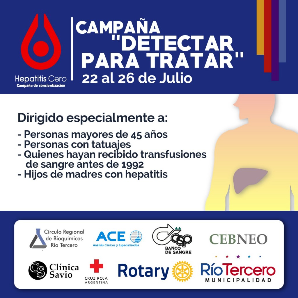 Esta este Lunes comienza la Campaña sobre la Hepatitis Cero trabajan el Rotary Club Río Tercero, Cruz Roja Filial Rio Tercero, el círculo de bioquímicos de Río Tercero y el Banco de Sangre de nuestra ciudad.