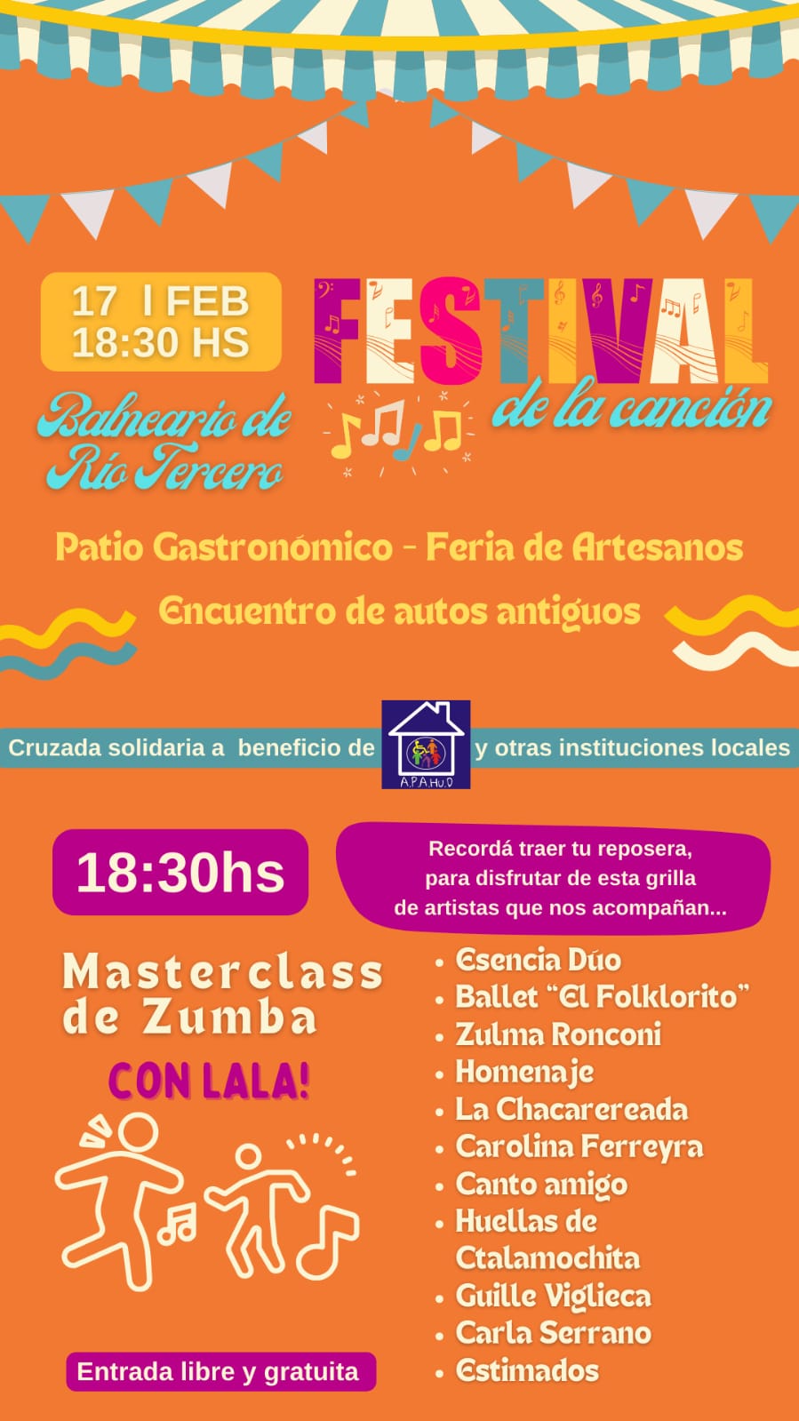 Así se expresó el presidente de la Comisión Directiva de APAHUD, quien señaló que ya están "en el trayecto final, sólo falta acomodar algunas cosas", para comenzar a vivir la nueva edición del Festival de la Canción. El evento comenzará a las 19 30 en el escenario del Balneario Municipal con una gran grilla de artistas, Patio Gastronómico, Feria de Artesanos y Exposición de autos.