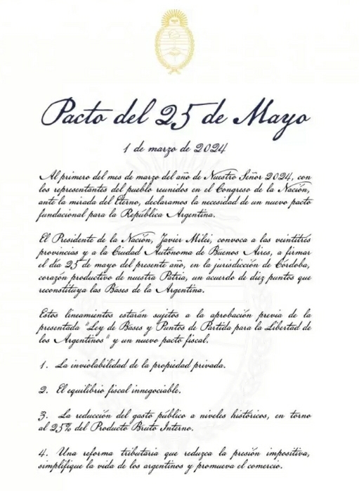 LOS 10 PUNTOS DEL PACTO DE MAYO QUE PROPUSO JAVIER MILEI