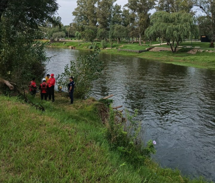Siendo las 09.00 horas aproximadamente, Personal Policial se constituye en el Balneario Municipal donde entrevista a personal del D.U.A.R (Departamento Unidades de Alto Riego) abocado a la búsqueda de la persona que en la víspera se habría arrojado del puente negro. En el Río Ctamucuchita y a unos 2500 metros aproximadamente del punto cero, observan una persona de sexo masculino de 65 años de edad aproximadamente en las aguas del Río, a 1,50 metros de profundidad y a 3.50 metros de la costa. Permanece consigna policial en el lugar.
