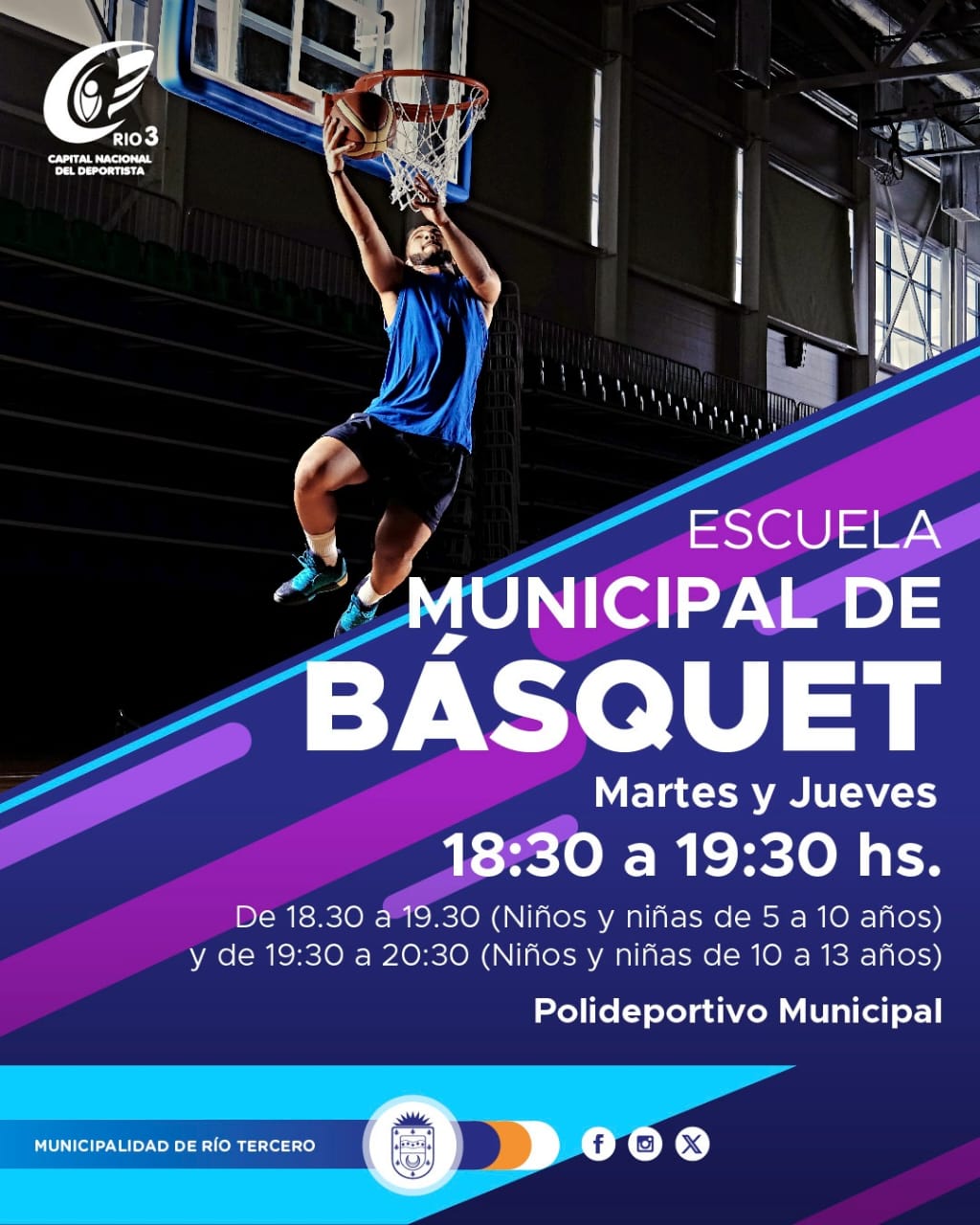 Informes e inscripciones en el 📌Polideportivo Municipal (Liniers 190), de lunes a viernes de 08:00 a 13:00 hs.