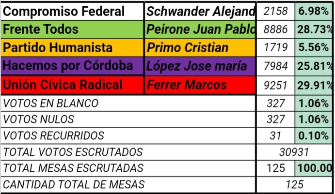 La UCR se impuso con tan sólo un punto del diferencia del Candidato Juan Pablo Peirone