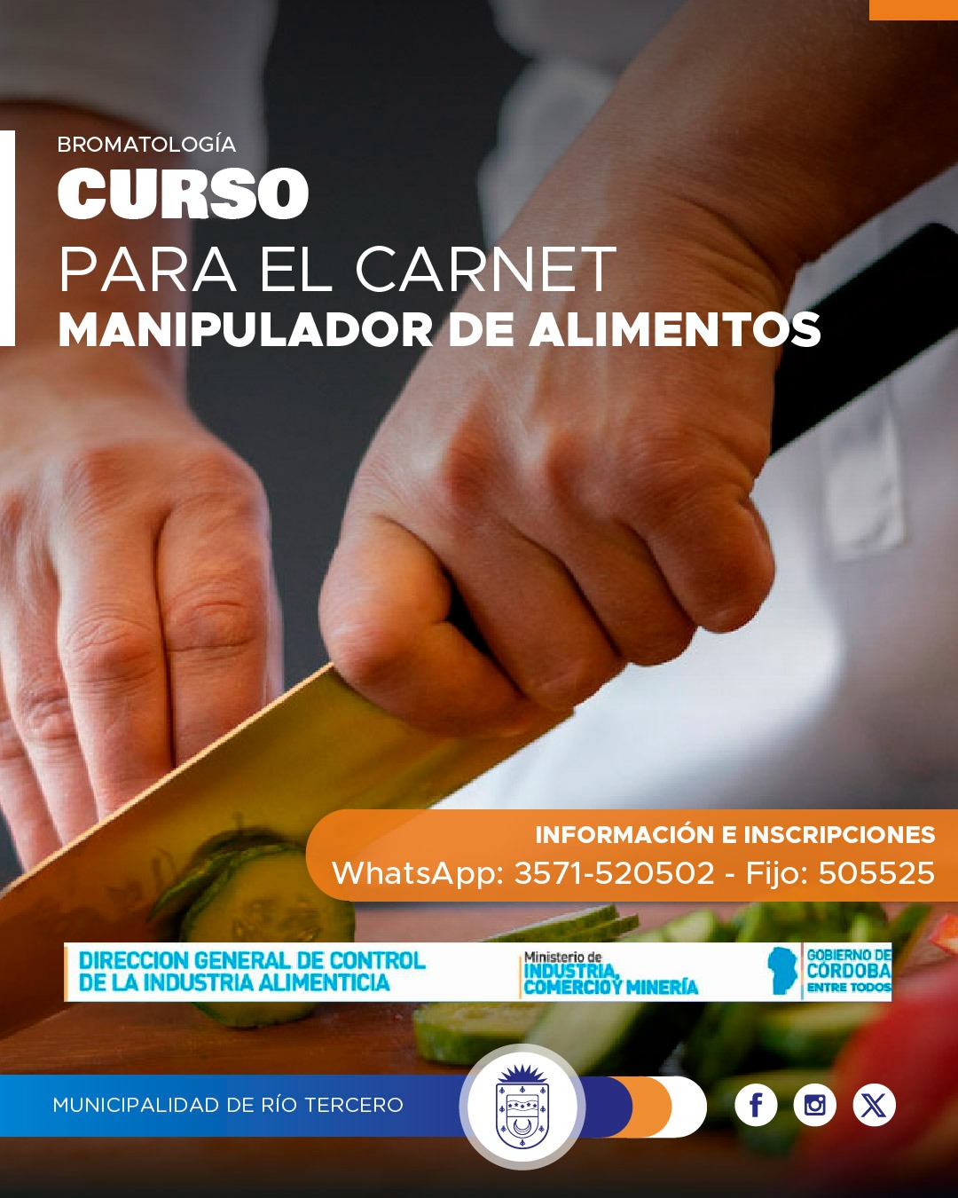 �?… Los próximos 4 y 5 de abril de 14:00 �??‘ a 16:30 hs �??? en el Anfiteatro Municipal llevaremos a cabo el curso para obtener el Carnet de Manipulador de Alimentos.