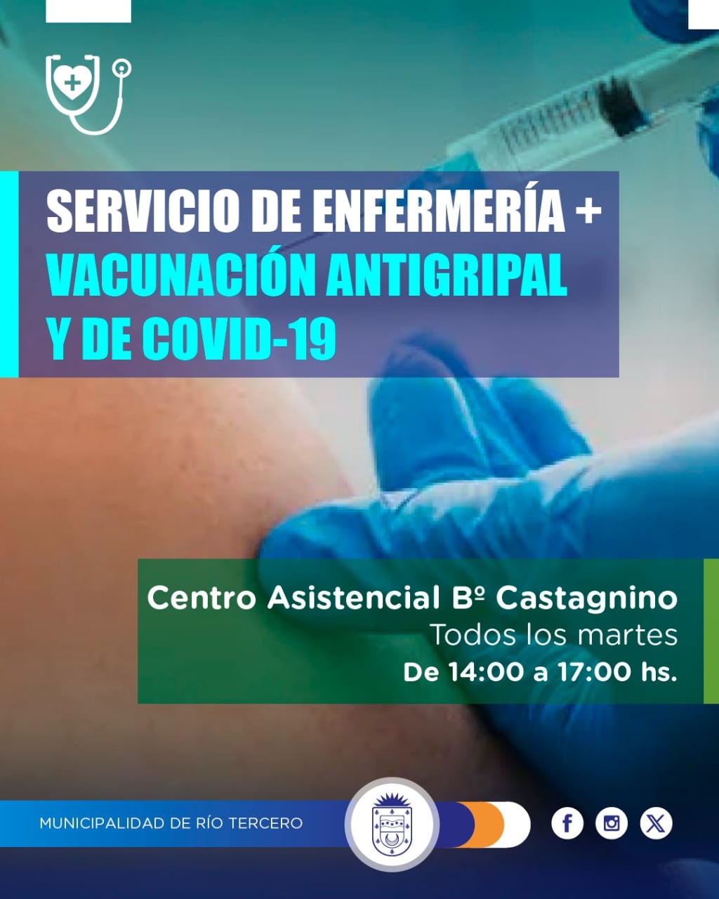 👉 Queremos informarles que se encuentra funcionando el servicio de enfermería + Vacunación de Gripe y Covid-19 💉 en la Sala Asistencial de Barrio Castagnino ubicada en calle Guillermo Marconi 1900.📍