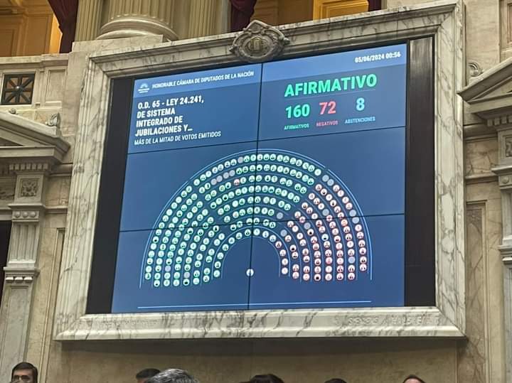 La Libertad Avanza y el PRO la rechazaron en la votación. El bloque oficialista había firmado en comisiones un dictamen que reproduce exactamente los términos del DNU 274, que solamente reconoce una recomposición parcial del 12,5% de los haberes y sobre esa base actualiza por la inflación.