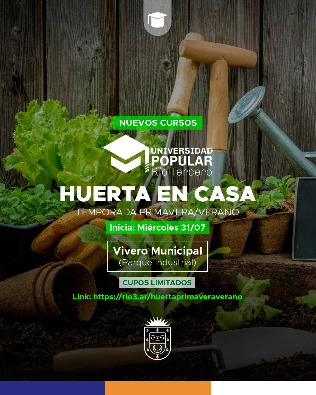 Ya están abiertas las inscripciones para capacitarse en el Curso Gratuito de Huerta en Casa - Temporada Primavera/Verano, el cual está certificado por la Universidad Nacional de Córdoba a través de la Universidad Popular de Río Tercero. �???