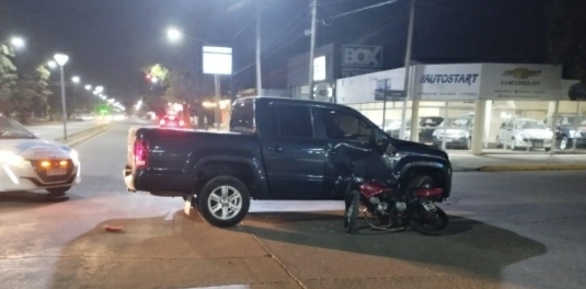 Parte policial: Accidente de tránsito entre una camioneta y una moto con un joven lesionado.