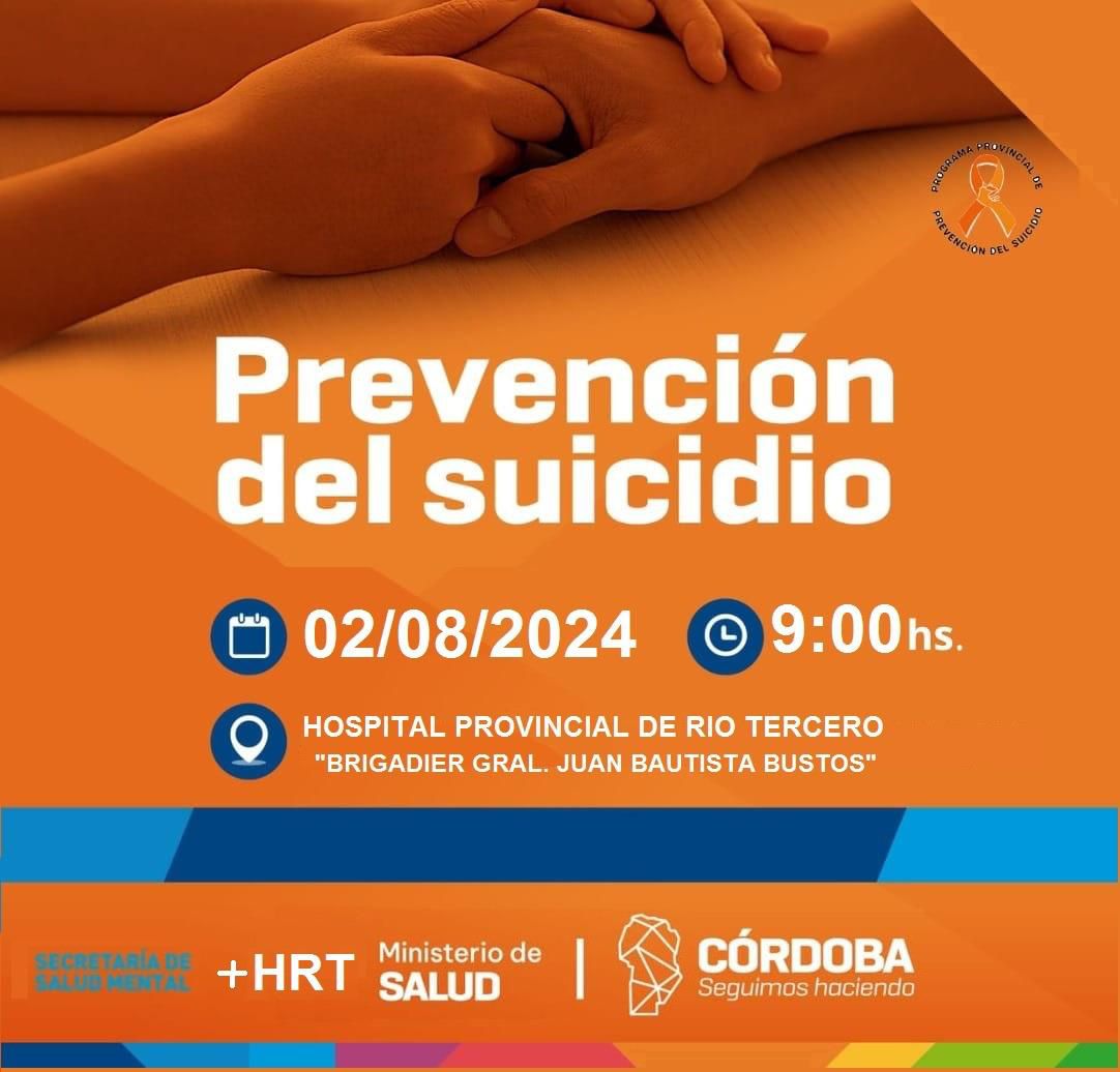 👉El próximo viernes 02 de agosto de 2024, a partir de las🕓 9 horas, el Lic. Moreno Frias, Misael y la Lic. Re Carolina, integrantes del Programa Provincial de Prevención del Suicidio, âž¡ï¸desarrollarán una capacitación dirigida a la comunidad sanitaria del departamento Tercero Arriba, a desarrollarse en el ðŸ¥Hospital Provincial de Rio Tercero "Brigadier Gral. Juan Bautista Bustos" - Provincia de Córdoba.