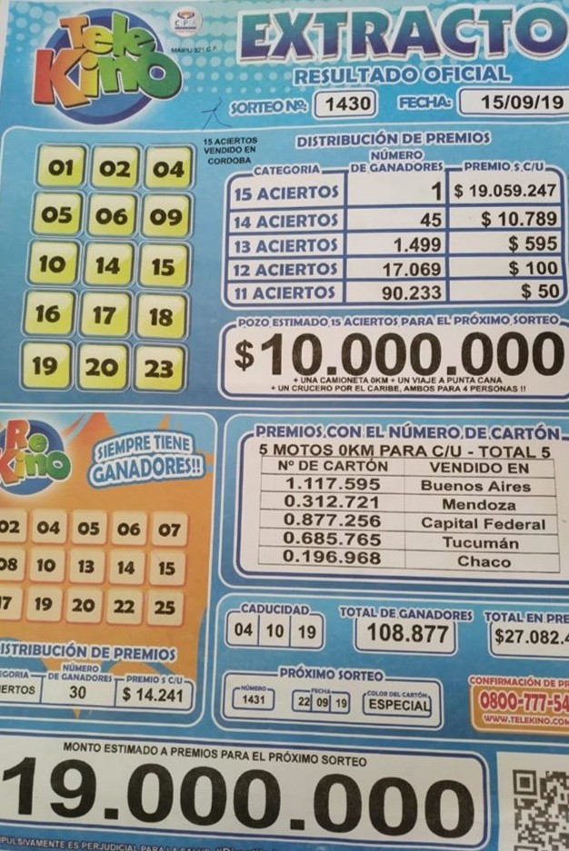 Un jugador de Telekino acertó los 15 números de la última jugada. El ganador, que aún no se presentó a retirar su premio, jugo su boleta en la agencia oficial de calles Salta y 25 de Mayo de la Ciudad de Almafuerte.