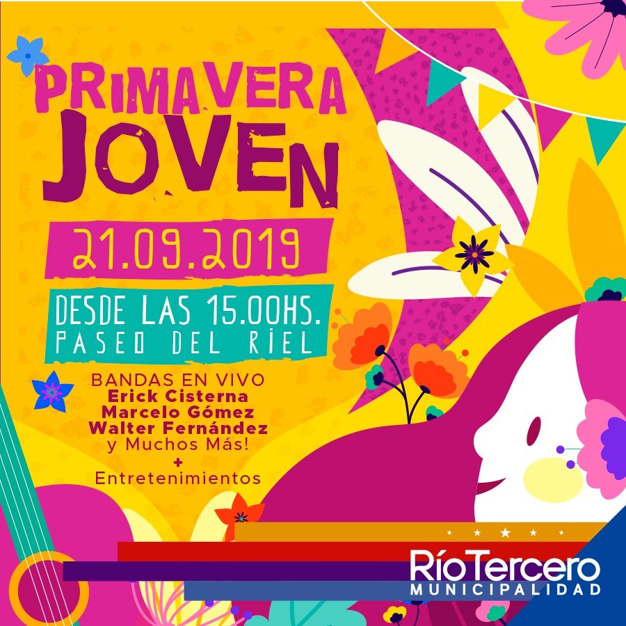 Este sábado 21 de septiembre en el Paseo del Riel a partir de las 15hs se festejara el día de la primavera y el día del estudiante, habrá música en vivo (Marcelo Gomez, Walter Fernandez y Erick Cisterna entre otros)