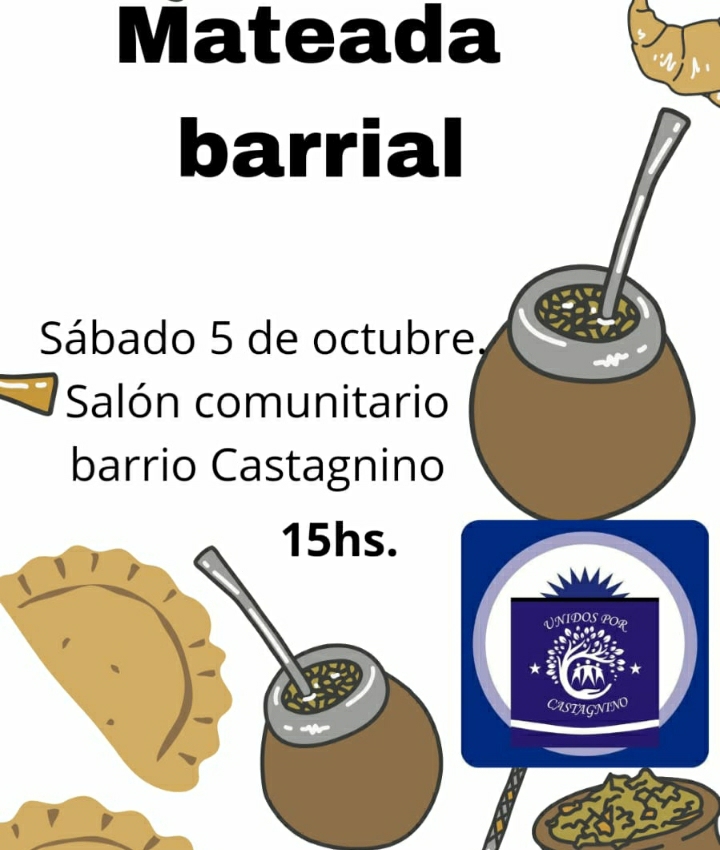 La presidenta de la comisión vecinal de barrio Castagnino, Silvia Altamirano, invitó a las vecinas de toda la ciudad a participar de la Mateada Barrial que se realizará este sábado a partir de las 15 en el Salón Comunitario, ubicado en Rafael Obligado 250. La idea es "celebrar la vida, la amistad y la vecindad, que son los pilares fundamentales para la comunidad", expresó Altamirano agregando que quienes vayan a disfrutar sólo deben llevar el equipo de mate.