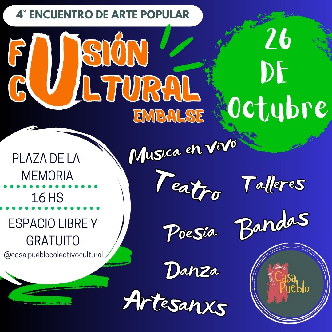El evento está organizado por el Colectivo Cultural Cada Pueblo, que es independiente y autogestivo, y se realizará el sábado a partir de las 16 en la Plaza de la Memoria de Embalse. Hablamos al respecto con Emiliano Cosma, integrante del Colectivo Cultural, quien comentó que habrá "música en vivo, teatro, danza, poesía y una gran exposición de Artesanos de todo el Valle".