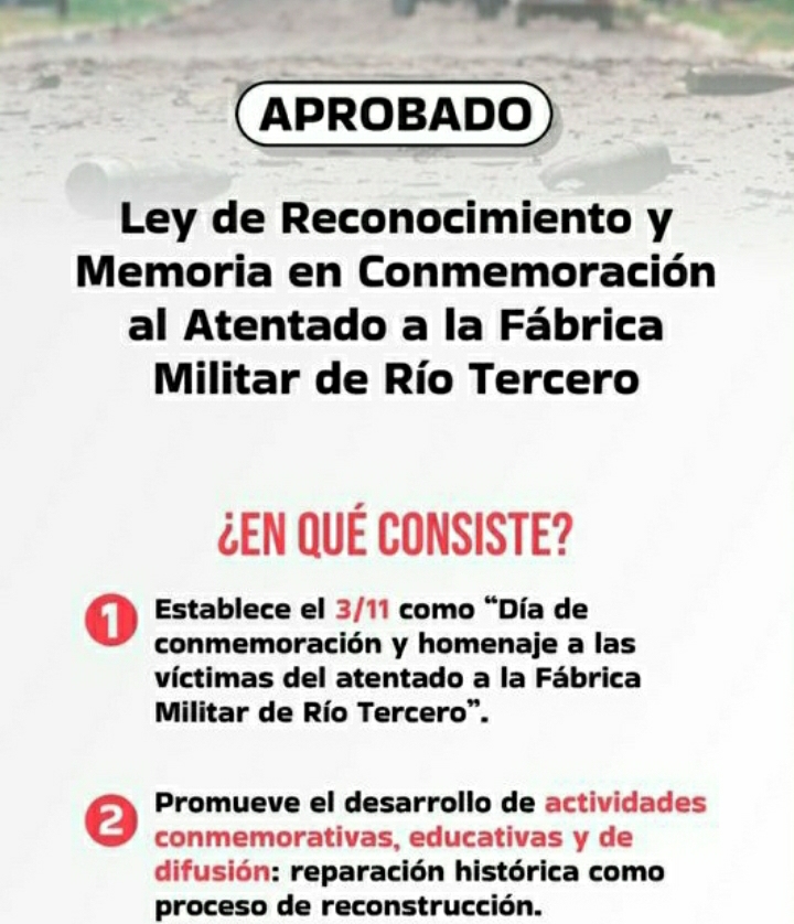 La legisladora provincial se refirió a la aprobación la semana pasada de la Ley de Reconocimiento y Memoria en Conmemoración al Atentado a la Fábrica Militar de Río Tercero, considerando que "es un justo reconocimiento a uno de los atentados más trágicos que ha tenido la provincia de Córdoba". Austin también destacó que la idea del proyecto nace del fotógrafo Sebastián Salguero, quien hizo un relevamiento de imágenes de esta parte de nuestra historia, y contó con el acompañamiento de los legisladores departamentales Juan Pablo Peirone y Gustavo Bottaso.