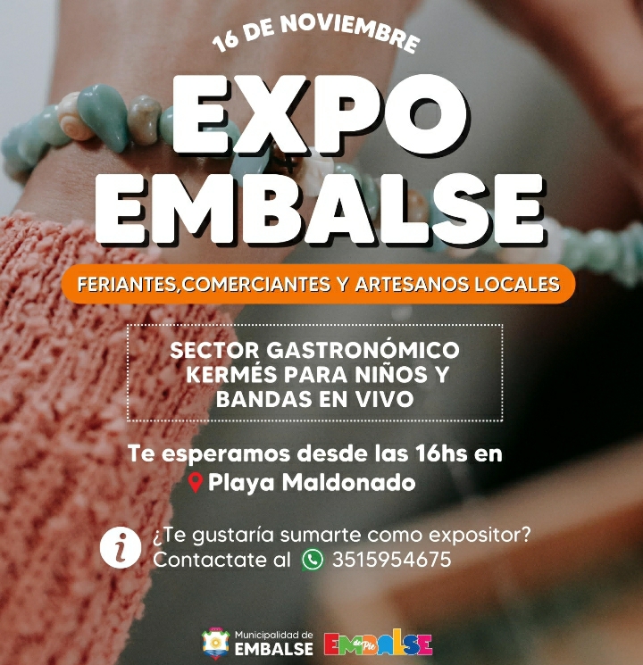 La Expo Embalse de esta manera estará divida en tres grandes sectores: Circularte donde se podrán adquirir productos usados, Comerciantes con productos nuevos y Artesanos, además de contar con un sector gastronómico, una kermes con juegos para los más pequeños y espectáculos en vivo. El evento se realizará en Playa Maldonado entre las 16 y las 20 y la intención es "hacer crecer la economÃa local y regional asà como el turismo, brindando un espacio de participación a todos los sectores", señaló Rivarola.