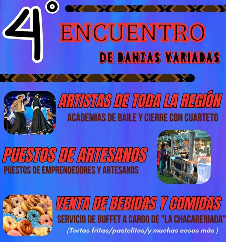 El mismo tendrá como escenario la Plaza Esperanza a partir se las 14 30 y si bien "se trata de un encuentro de Danzas también habrá presencia de músicos", señaló Spina. Las academias y artistas llegarán de toda la región y además habrá un Paseo de Artesanos organizado por Expo Activa Río Tercero y servicio de bufette.