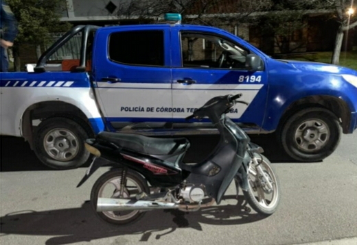 A las 04.30 horas, en calle Rastreador Fournier esquina San Pedro de barrio Media Luna, se procedió al secuestro de una motocicleta marca CORVEN 110 c.c.