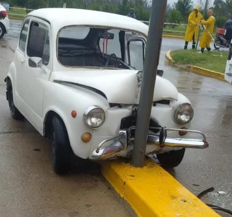 Cerca de las 12 hs de hoy miércoles, una pareja que se conducía en un Fiat 600 por la avenida Savio intentó girar hacia barrio Monte grande por la calle Río Bamba, en Monte Grande, pero terminó chocando contra una columna de alumbrado público.