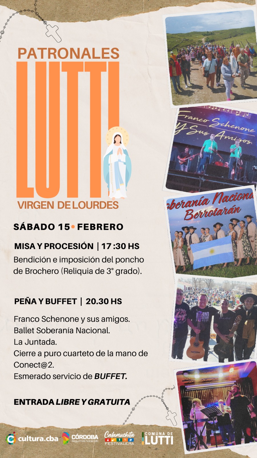 Romina Cejas, jefa comunal de Lutti, invita a toda la comunidad a disfrutar de las Fiestas Patronales, que se celebrarán este sábado 15 de febrero. La jornada comenzará a las 17:30 hs con la misa, el rezo del Rosario y la tradicional procesión por las montañas, que le darán un marco único al evento.