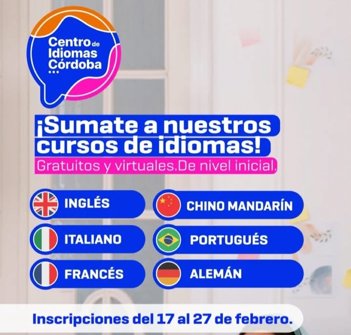 El presidente de la Agencia Córdoba Joven, José Ignacio Scotto, destacó la apertura de inscripciones para los cursos gratuitos de idiomas del Centro de Idiomas Córdoba. Desde el 17 de febrero y hasta el 27 de febrero, los jóvenes de 16 a 35 años podrán acceder a formaciones en inglés, francés, italiano, portugués, alemán y chino.