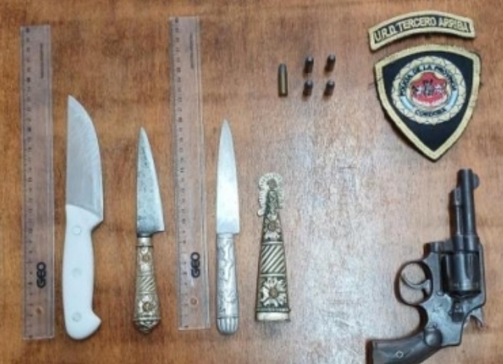 Almafuerte: Hombre fue aprehendido por amenazas con arma de fuego y cuchillos