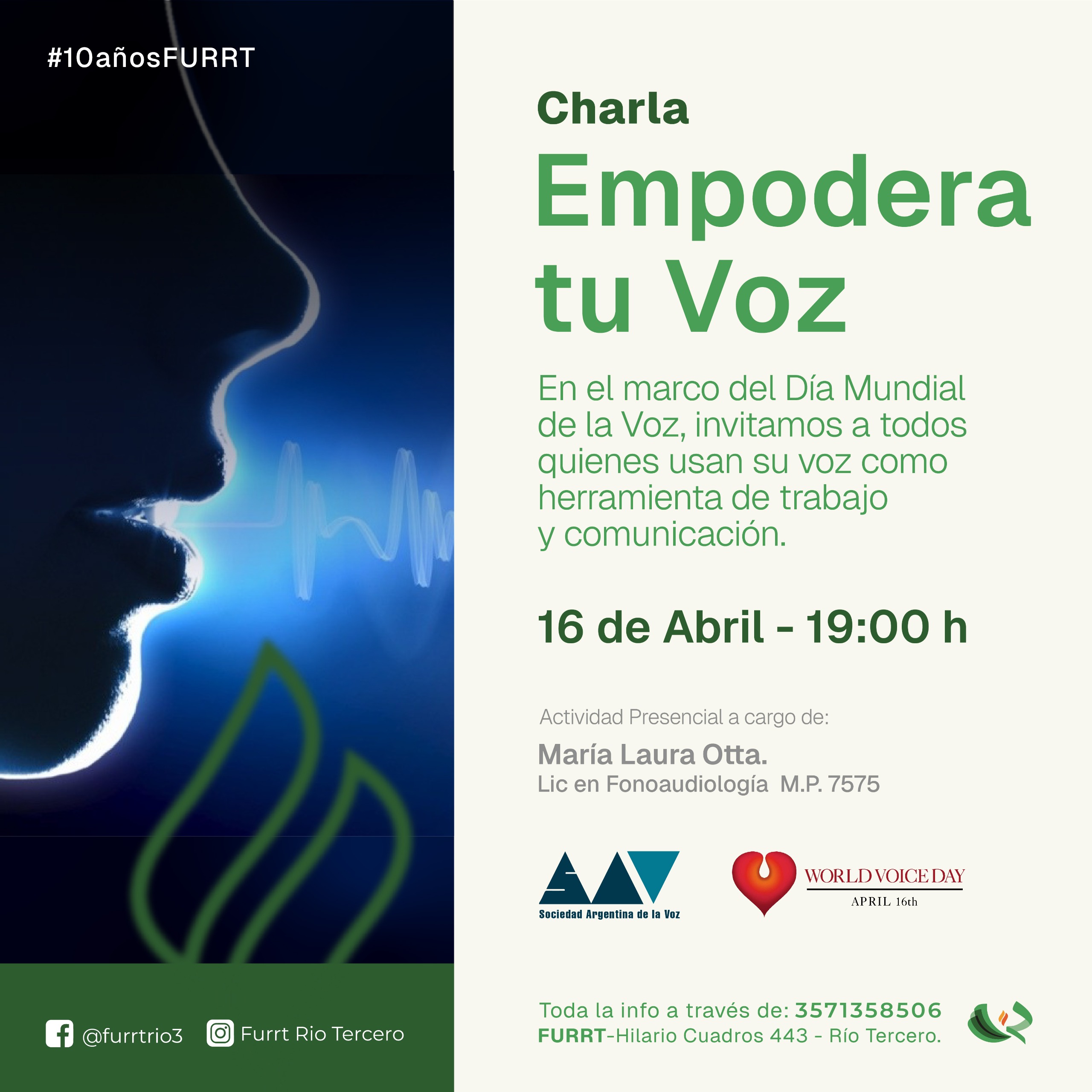 En el marco del Día Mundial de la Voz, la licenciada en fonoaudiología Laura Otta brindará una charla titulada "Empoderá tu voz", un espacio de concientización sobre la importancia del cuidado vocal, especialmente para quienes utilizan su voz como herramienta de trabajo.