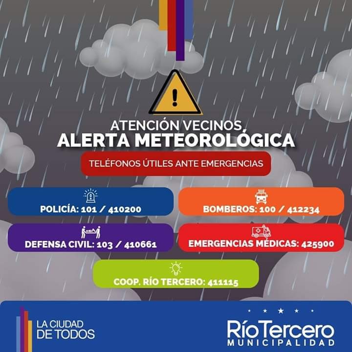 Alerta por : TORMENTAS FUERTES CON RAFAGAS Y CAIDA DE GRANIZO.