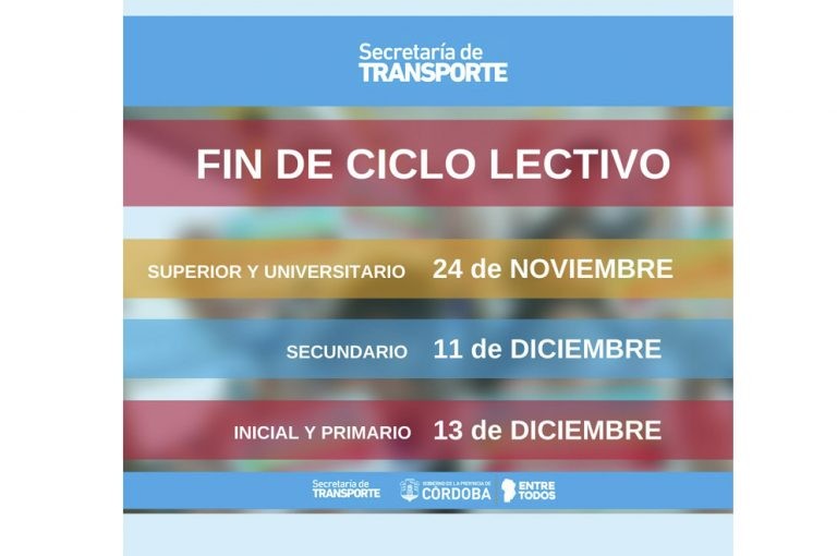 Como sucede cada año con la finalización del ciclo lectivo, el beneficio del Boleto Educativo Gratuito deja de tener vigencia. Así lo informó la Secretaría de Transporte de la Provincia, que estableció el siguiente cronograma: