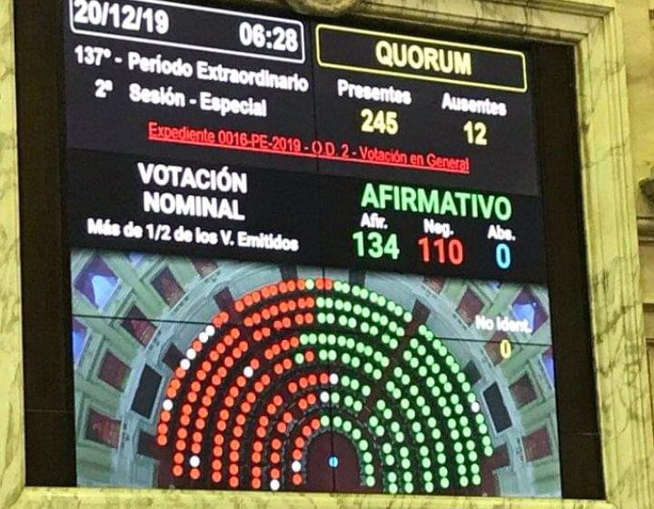 Luego de más de quince horas de debate, los diputados dieron 134 votos a favor del proyecto del gobierno de Alberto Fernández y 110 en contra.
