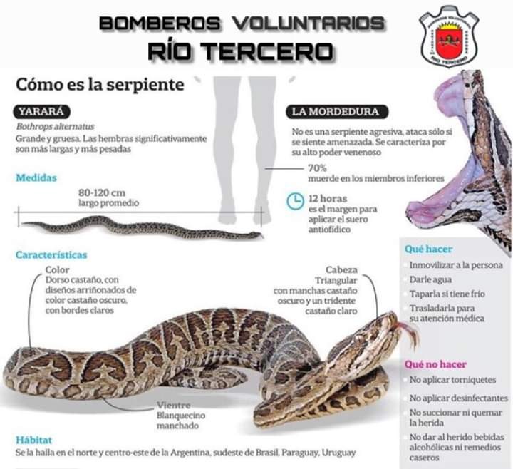 atender eventuales complicaciones. Cabe destacar que en nuestro Hospital Provincial de Rio Tercero cuenta con sueros antiofídico (dosis antidotos), igualmente que en Hospital de Santa Rosa de Calamuchita.