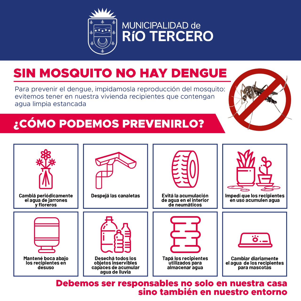 En el marco de los trabajos de prevención que se vienen realizando desde la Municipalidad de Río Tercero respecto del dengue, y ante el informe del comité de seguimiento de las enfermedades transmitidas por el mosquito aedes aegypti que dice que, desde el 28 de julio de 2019 al 16 de febrero de este año, se confirmaron cincuenta y cuatro casos de dengue en la provincia, *ninguno en la ciudad de Río Tercero o zona*, treinta y un casos importados y veintitrés autóctonos. Hasta ahora, no se han registrado casos de chikungunya ni de zika.