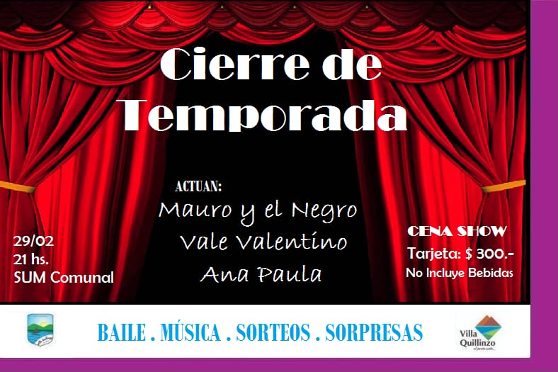 Este Sábado 29 Villa Quillinzo realiza el cierre de temporada con una Cena Show