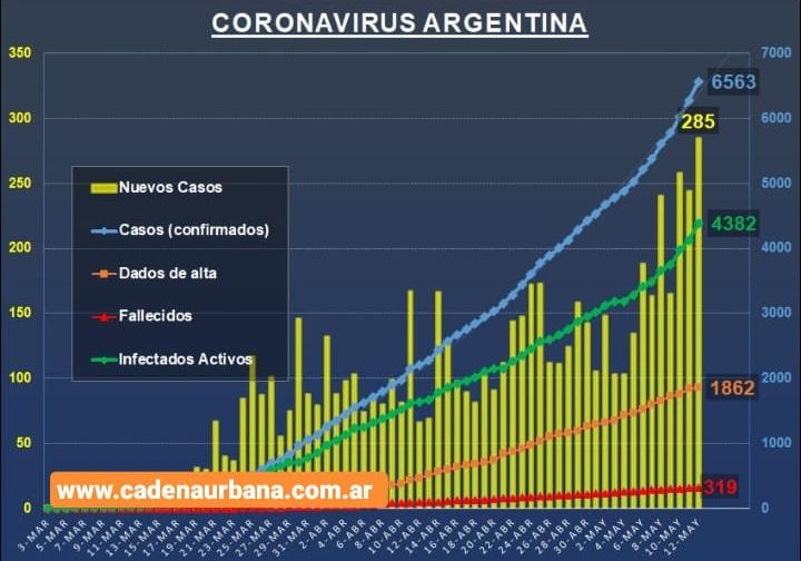Se registraron 2 nuevas muertes. Un hombre, de 87 años, residente en la Ciudad de Buenos Aires (CABA); y una mujer, de 100 años, residente en la provincia de Buenos Aires. Al momento la cantidad de personas fallecidas es 319.