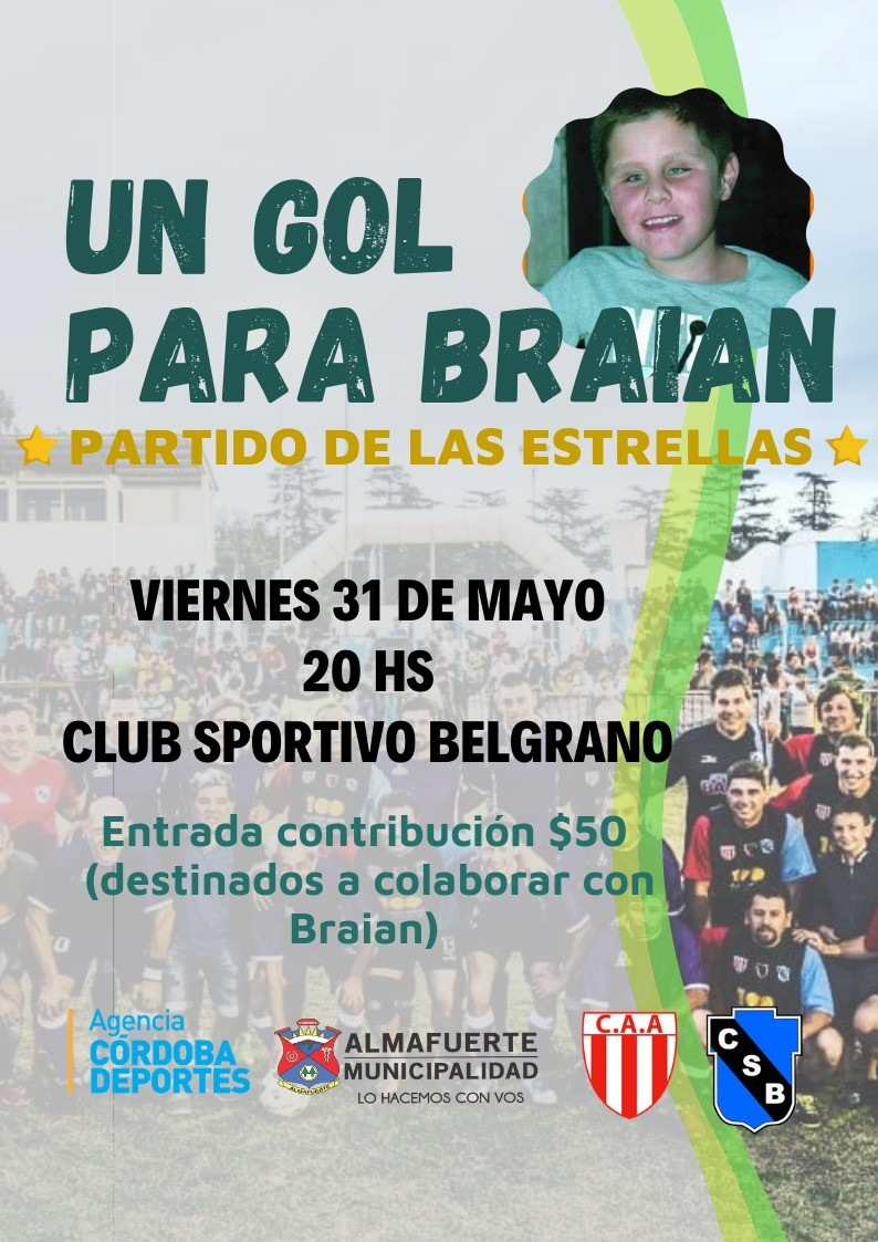 Numerosas figuras del fútbol cordobés jugarán un partido solidario el próximo viernes en Almafuerte para ayudar a un joven de esa ciudad que necesita viajar a China por una operación.