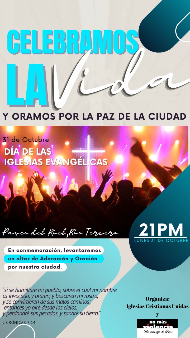 Organizado por las Iglesias Cristianas Unidas y el grupo "No más violencia" en el marco del Día de las Iglesias Evangélicas, se realizará este lunes a partir de las 21 horas en el Paseo del Riel el evento "Celebramos la vida y oramos por la paz de la ciudad".