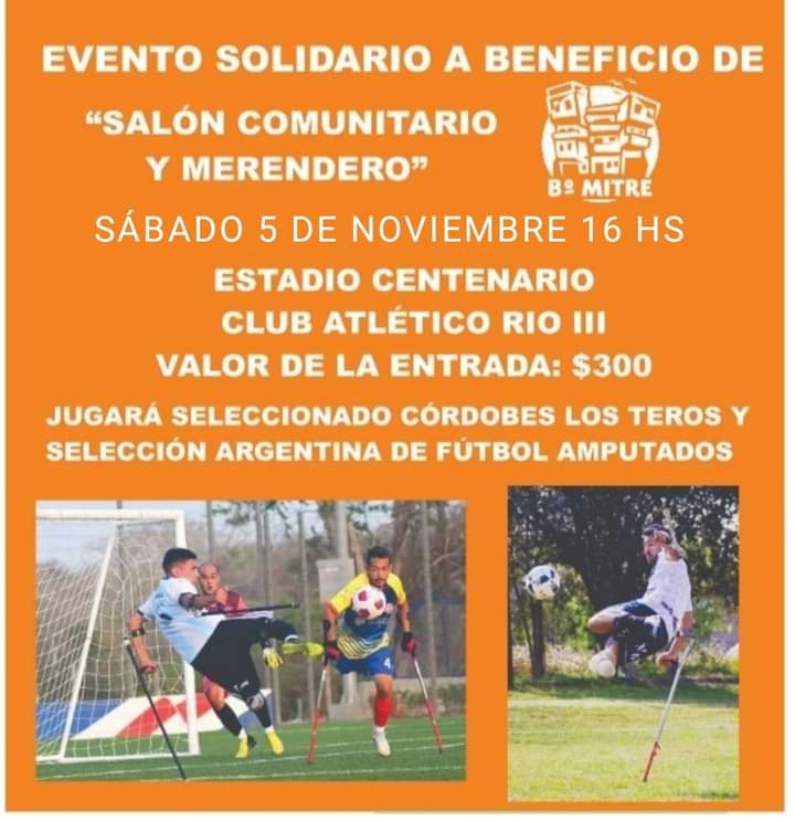 Desde la Comisión Vecinal de Barrio Mitre invitan a presenciar los partidos que disputarán ante combinados femeninos y figuras deportivas de la ciudad. Los mismos se llevarán a cabo desde las 16:00 hs. en el Estadio Centenario del Club Atlético Río Tercero, el valor de la entrada es de $300.