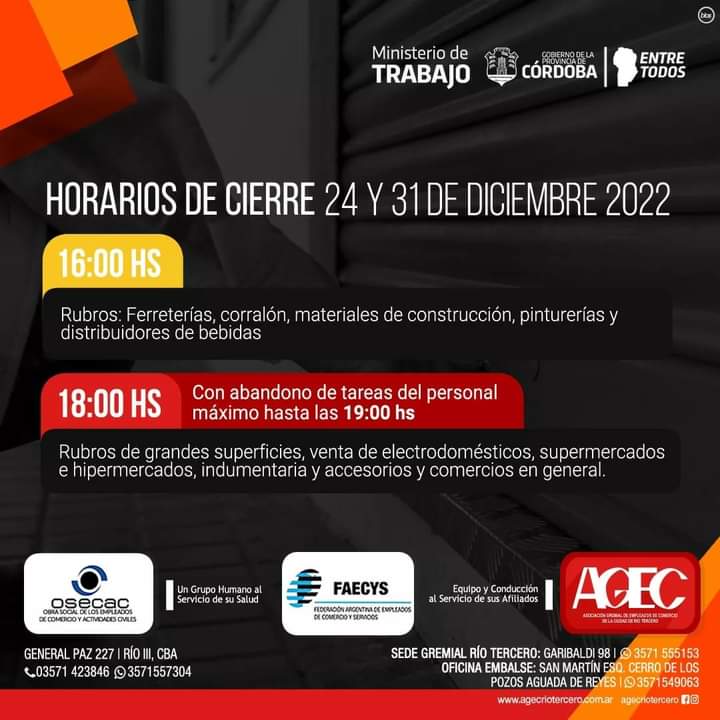 También Orlandi pidió a la gente que trate de hacer sus compras de manera temprana y se refirió al acuerdo con el Ministerio de Trabajo para que los días 24 y 31 los comercios cierren a las 16 ó 18 dependiendo del rubro, para que los empleados puedan retirarse más temprano, con la idea de que este sistema se mantenga los próximos años.