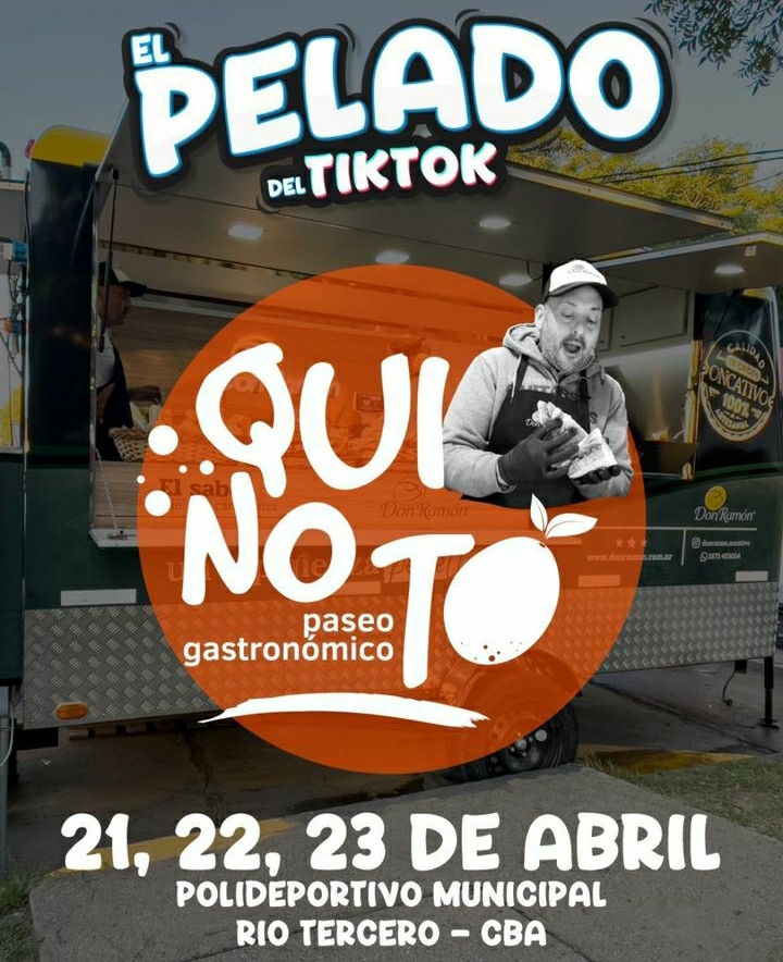 Una de las presencias esperadas en la tercera edición de Quinoto es la del Pelado de Tik Tok, que se hizo viral con sus sandwiches gracias a la idea de uno de sus hijos, y a partir de allí pasó de tener una fiambrería a preparar sandwiches otra clientes de Villa María y de distintas propuestas gastronómicas en la provincia.
