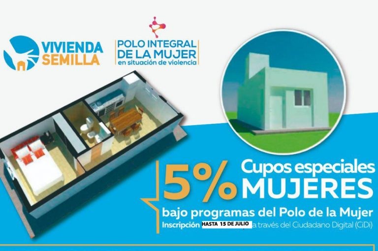 Las líneas Vivienda Semilla y Semilla Plus cuentan con un 5% de cupo destinado a mujeres que se encuentran bajo programa del Polo Integral de la Mujer en Situación de Violencia. El plazo de inscripción vence el lunes 15 de julio.