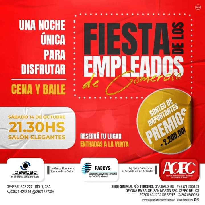 Así lo explicó el secretario general de la Asociación Gremial de Empleados de Comercio, José "Pepe" Orlandi, quien comentó que el feriado se concertó desde hace varios años que el día feriado sea el último lunes de septiembre, más allá de que el Día del Empleado de Comercio es el 26, "para que los trabajadores puedan disfrutar de un fin de semana largo". También Orlandi se refirió a la Fiesta del Empleado de Comercio, que se realizará el próximo 14 de octubre y para la cual las tarjetas ya están en venta en la sede gremial.