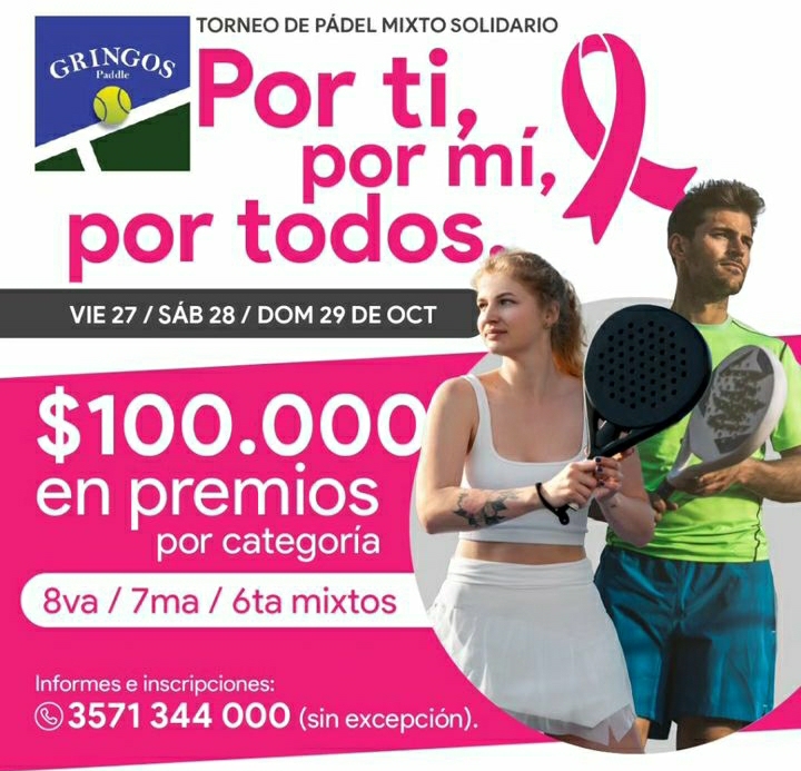 De realizará los días 27, 28 y 29 de octubre en Gringos Paddle para tres categorías y con una inscripción de 6000 pesos e importantes premios, y lo recaudado será destinado a Volcec. El campeonato está organizado por CECISA, AMCESIS y la Cooperativa de Obras y Servicios Públicos junto a Gringos Paddle, y en diálogo con Mañanas Compartidas la presidenta de Volcec, Alicia Demarchi, agradeció la iniciativa y el interés de las instituciones.