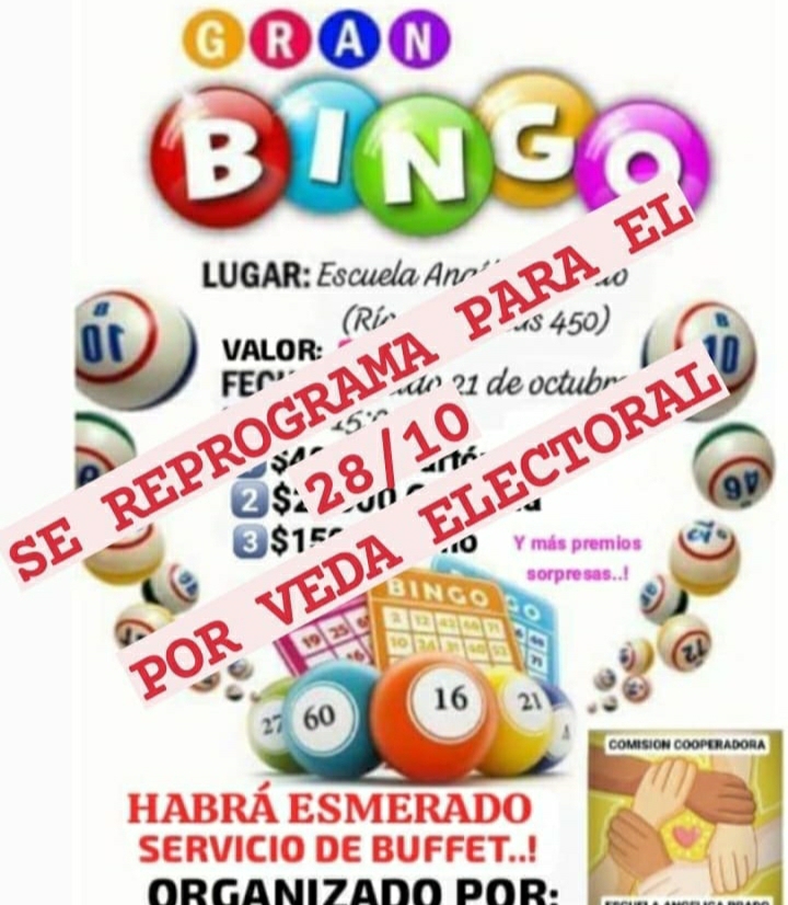 EL BINGO DE LA ESCUELA ANGÉLICA PRADO SE REALIZARÁ EL PRÓXIMO SÁBADO