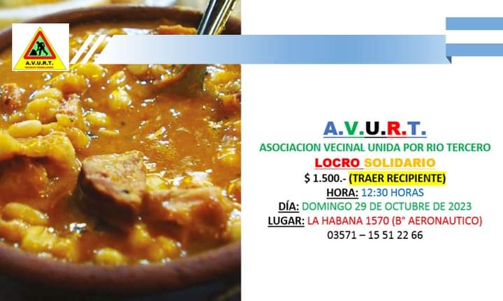 Con relación al mismo dialogamos con el concejal Nicolás Cappellini, quien señaló que "todos los años hacemos este locro para colaborar con los vecinos que tienen distintas problemáticas", utilizando lo recaudado para adquirir medicamentos, pasajes, ropa o lo que resulte necesario. El locro se realizará el domingo en La Habana 1570 de barrio Aeronáutico y las porciones podrán retirarse a partir de las 12 30. Para reservas los interesados se pueden comunicar al 3571 512266.