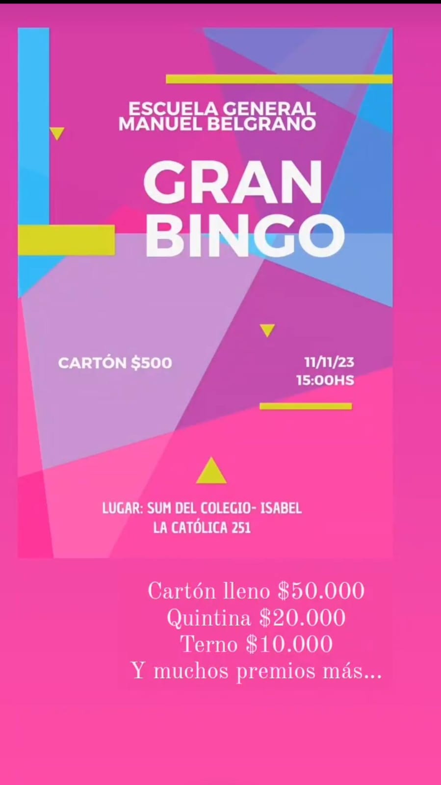 GRAN BINGO ESTE SÁBADO A BENEFICIO DE LA ESCUELA MANUEL BELGRANO