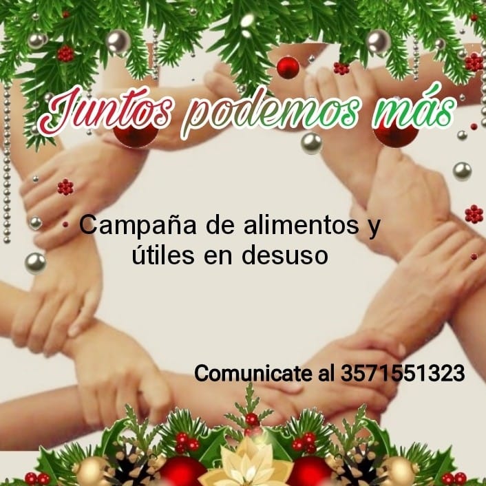 Así explicó Juan Salinas el nombre de la colecta de alimentos perecederos y útiles en desuso que lleva adelante la Agrupación 17 de Octubre. Salinas señaló que año a año para estas fechas se realiza la colecta para llegar a los hogares más vulnerables "para que tengan algo para compartir en las fiestas". También manifestó: "estamos convencidos de que será muy difícil acceder a los útiles el año próximo y por eso empezamos con tiempo esta campaña para ayudar a quienes más lo necesiten". Quienes quieran colaborar pueden comunicarse al 3571 551323.